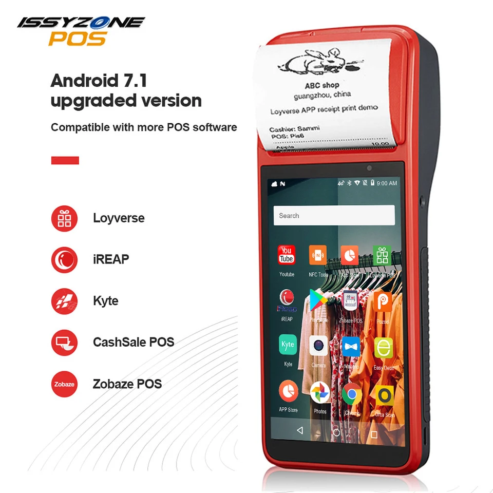Issyzonepos Pda Android 7 1 58mm Bluetooth Printer Thermal Scanner Wifi 4g Mobile Nfc Pesanan Pos Terminal Handheld Barcode Reader Printer Aliexpress