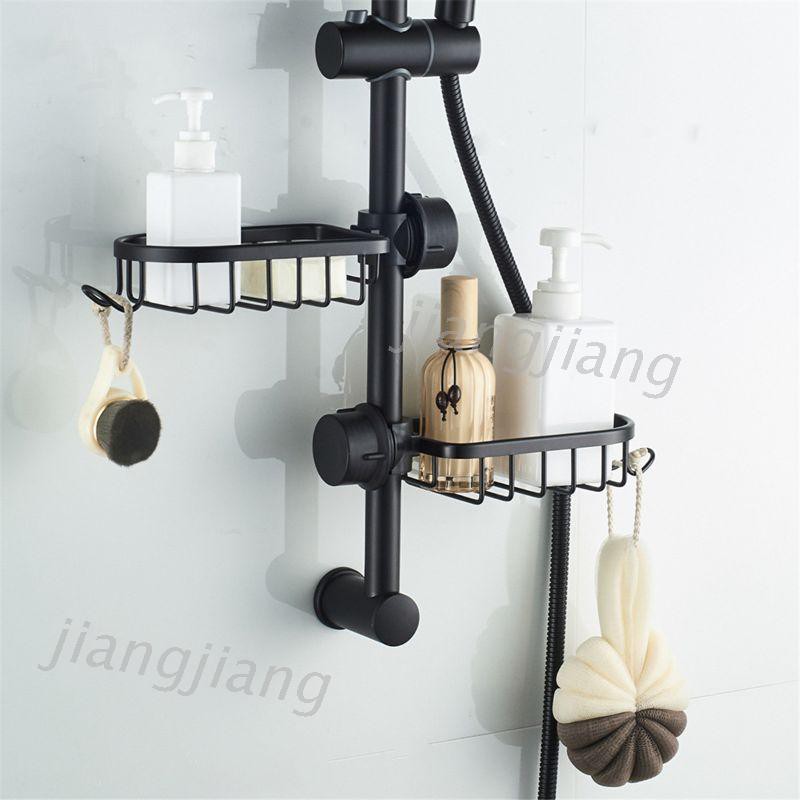 2j Bathroom Shelf Black Shower Storage Basket Storage Rack Adjustable Faucet Shopee Indonesia