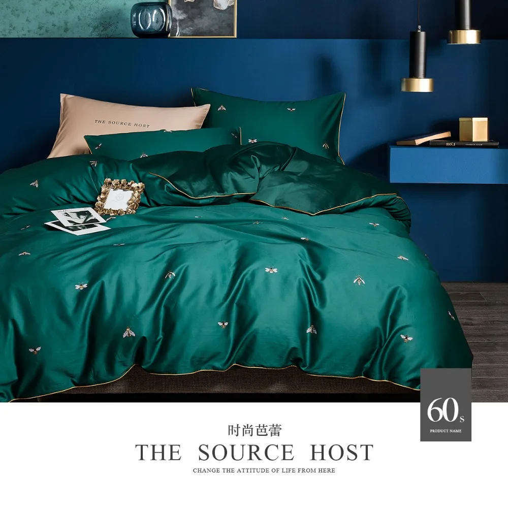 No 56 60 Mewah Emerald Green Selimut Penutup Set Katun Dengan Lebah Seprai Queen Ukuran 4 Buah Euro Tempat Tidur Double Linen 60s Satin Lembar Set Tempat Tidur Aliexpress