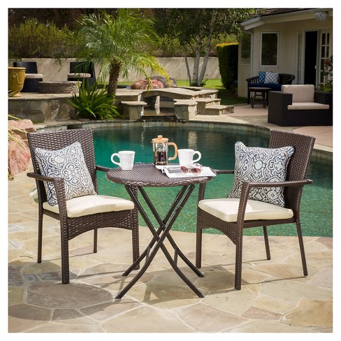 Elba 3pc Wicker Bistro Set With Cushions Brown Christopher Knight Home Target