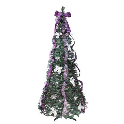 Northlight 6 Artificial Christmas Tree Prelit Purple And Silver Decorated Pop Up Clear Lights Target
