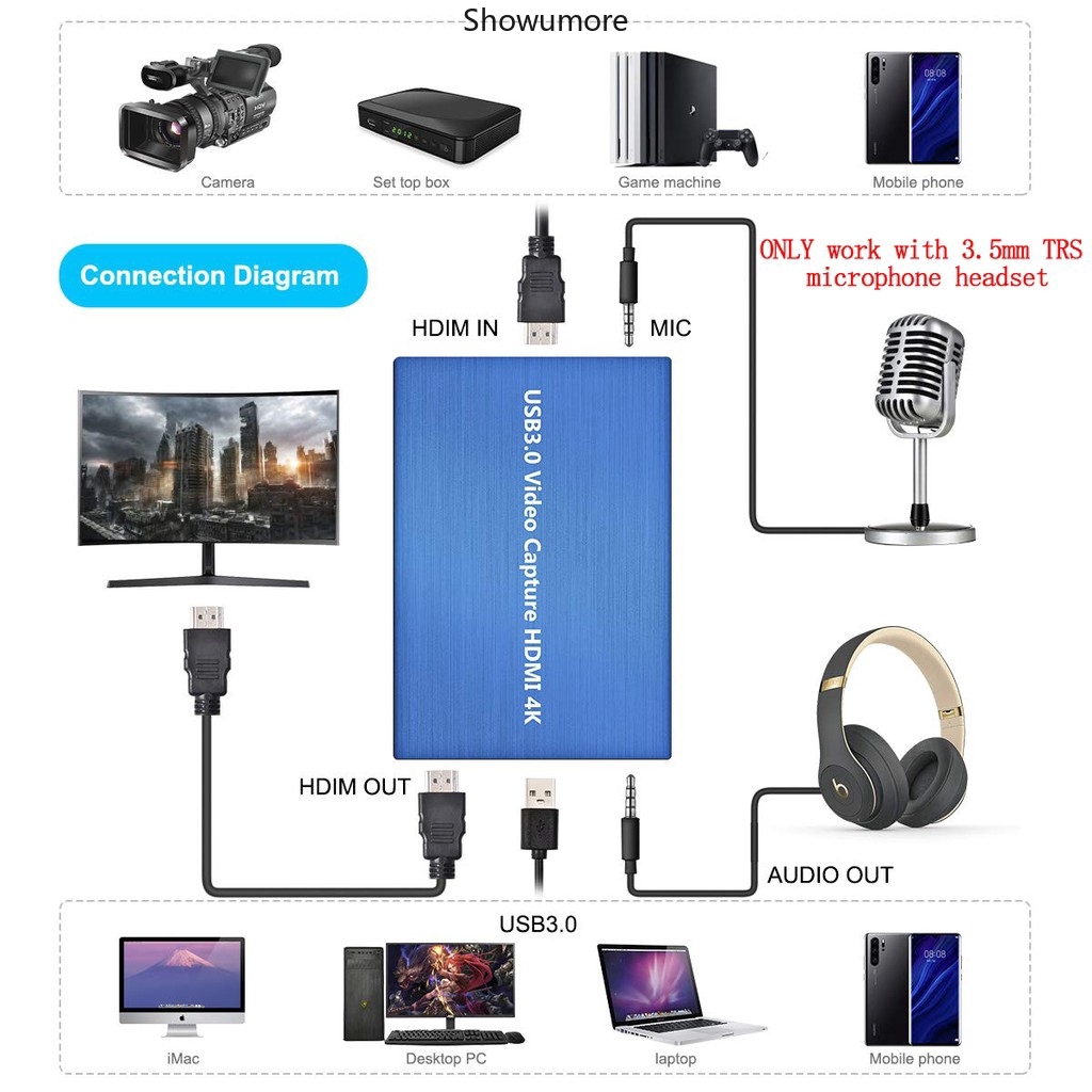 Amazon Com Capture Card 4k Hdmi Game Video Capture Card With Usb 2 0 Microphone Hdmi Loop Out Live Streaming Gaming Recorder For Nintendo Switch 3ds Ps4 Xbox One Camera Pc Computers Accessories