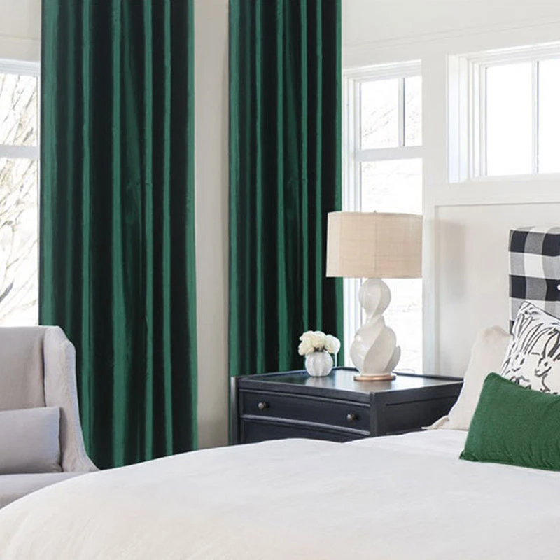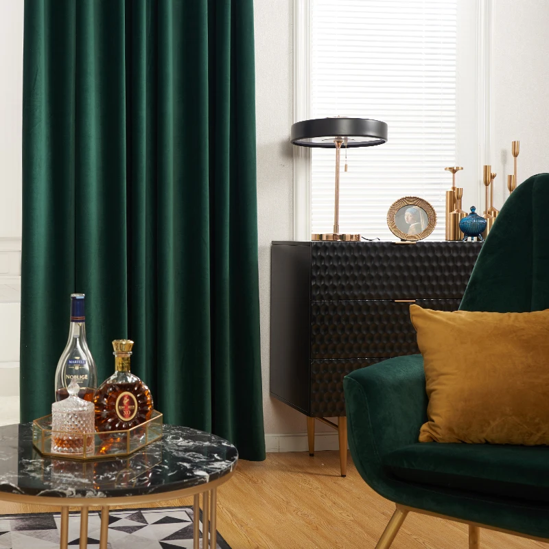 Luxury European Velvet Curtains Dark Green Window Curtain Solid Color Blackout Curtains For Bedroom And Living Room Curtains Aliexpress