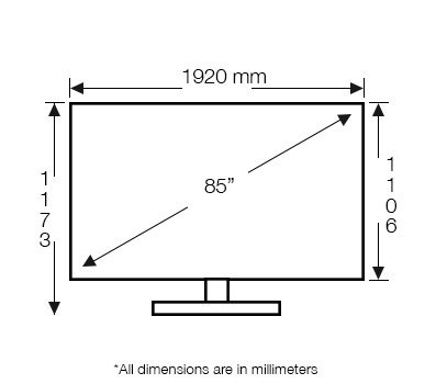 The width of the TV is about 741 inches long 62 feet with a height of around 417 inches 35 feet and an area of 3090 square inches 1993 square meters. This is among the largest TV screen sizes in the market. TV size 90 inch.