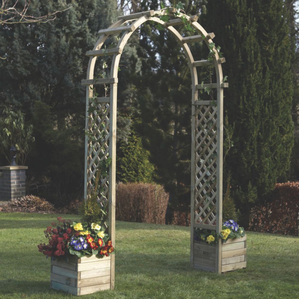 Rowlinson Arch With Planters Natural Timber 1960 X 500 X 2500mm Wooden Garden Arches Screwfix Com