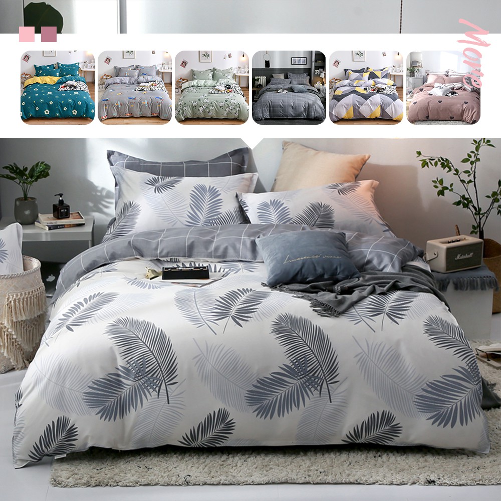 9 Designs Ins Printed Bedding Set Cadar Single Queen Grey Green Polyester King Bed Sheet Set Duvet Cover Pillowcase Shopee Indonesia