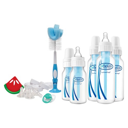 The Newborn Feeding Set comes with 3 8oz240ml Standard bottles 2 4oz120ml Standard bottle 2 extra Level-Two silicone nipples 2 StorageTravel caps and 3 cleaning brushes are small nipple brushes and they are INSIDE the bottles. Dr Browns Options Anti-Colic 270ml Four Pack. Each nipple is specially engineered to offer the same consistent natural flow so you and baby know what to expect.